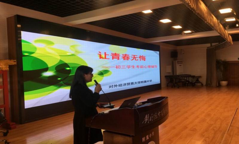 2019年5月5日,外经贸附中94中初中部请来了教育部国培计划“心理健康教育”主讲专家董艳菊老师给初三学生们进行备战中考的心理讲座。讲座受到了老师和学生们的一致好评。