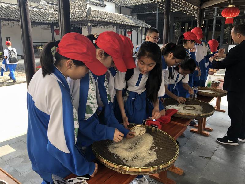 6:30分,D701次列车稳稳停靠在苏州站,贸大附中初一年级近200名师生走进了南方温润清爽的空气中。清点人数、出站、与当地向导对接,一切进行得有条不紊。40分钟后,他们便来到了素有“神州水乡第一镇”之称的甪直古镇。眼前“小桥流水人家”式的江南生活格调,让人深觉惬意与安闲。参观“叶圣陶纪念馆”,追思“一代师表”在此地走过的最初教育岁月;乘舟环游水乡,感受白墙青瓦的古朴淡雅;学做青团、酱菜、享受舌尖上的江南味道......丰富多彩的研学活动,让贸大附中的师生们纵情于江南初夏的绮丽光景中。
