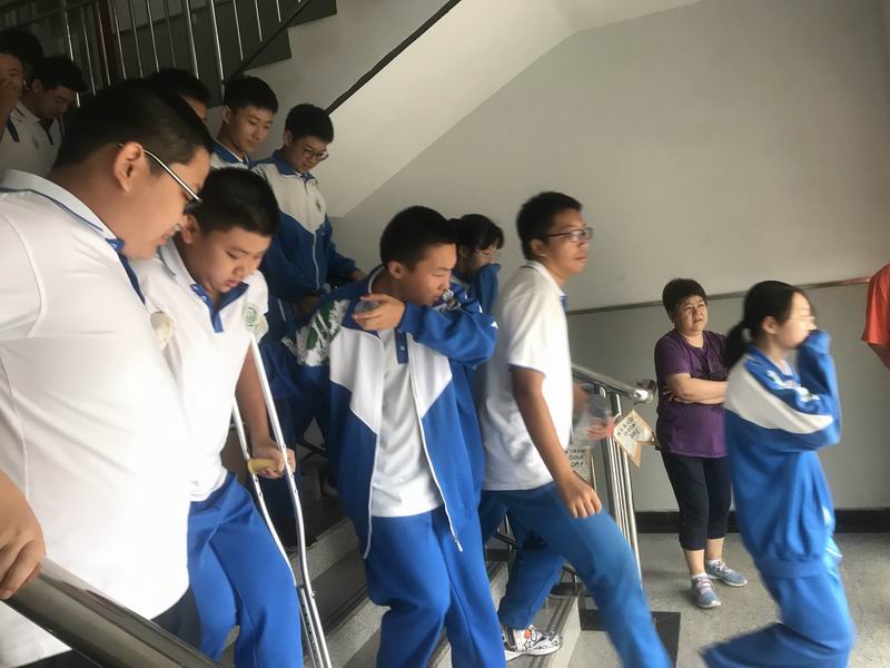 为了使全校师生进一步增强生命安全意识,学会在灾害来临时能够紧急顺利逃离不安全场所,最大限度地减少灾害带来的人员伤亡,同时提升我校应急疏散演练的组织能力和管理水平,我校初中部在学生发展中心的周密策划下,在年级组、体育组、班主任的带领下,在所有教职员工通力配合下,于2019年9月12日上午,顺利开展疏散演习活动。