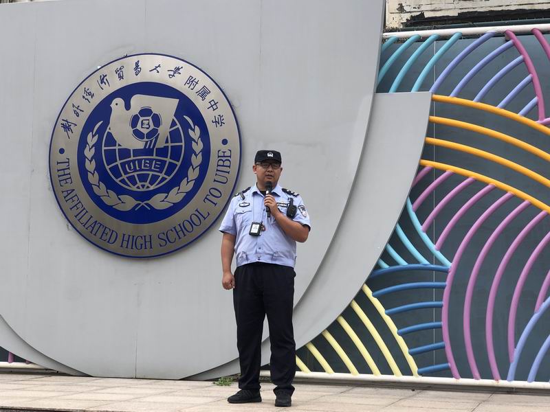 所有师生疏散到操场后,同学们在操场上有秩序的排列队形,认真听取花家地派出所社区民警任彦磊警官讲防恐防暴的相关知识。任警官详细讲解了恐怖组织的基本知识,防恐防爆的基本应对和预防方法,这使得同学们可以在危险的情况下,可以作出相应的防护。