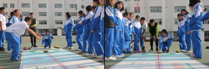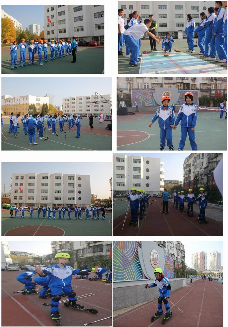 在当天下午的1:20分,学子们在学校的操场上列队,做活动前的准备工作。孩子们的激动与兴奋之情溢于言表,摩拳擦掌地准备这场冰雪之旅。在老师的引领下,孩子们迅速地换上“装备”,并有序地进入各个不同项目的场地。初登越野滑轮,很多孩子都站不稳,小心地站立着,不敢轻易挪动。有些孩子甚至选择蹲着向前滑行,在老师鼓励和帮助下,在孩子们互相搀扶下,在老师和孩子们的鼓励声中,孩子们逐渐站成了整齐的行列,要为孩子们的互帮互助精神点赞。如何站起来?如何站稳?如何滑出第一步?如何换脚?如何转圈?……这些简单的行为,对初登越野滑轮或者旱地滑轮的孩子们而言,充满着挑战。每一位教练老师都认真地对该组项目进行示范与讲解,陪伴孩子们反复练习。渐渐地,孩子在各组教练老师的指导下适应了学习节奏,滑行变得熟练起来。在学习的过程中,孩子们学会了如何应对困难。在面对困难时,直面困难,克服畏难心理,找到方法窍门,反复练习才能有所收获。而这也正是孩子们在学习中应对困难的方法策略。在玩桌板冰壶球的项目时,同学们团结一心,为正在比赛的同学加油呐喊,这不仅增强了该生的信心,还极大地增进了同学们之间的友情。在学习临近尾声时,大部分孩子都基本掌握了项目的方法和流程。他们不仅学到了项目的知识,还增进了同学之间的友情。两个小时的学习时间就在孩子们满满的收获中结束了,这次活动增强了孩子的信心,让他对冰上运动不再陌生与恐惧,这将激励他今后的学习生活。“冰雪运动寄情冬奥”对外经济贸易大学附属中学体验课程今后还将继续开展,将有越来越多的附中学子感受到冰上运动的魅力,我们也衷心地希望,可以通过该课程,让孩子们感知冬奥魅力,品味冬奥精神,喜迎2022 年北京冬奥会的召开。