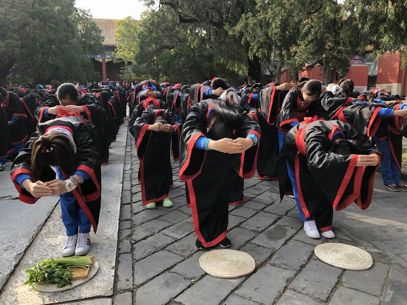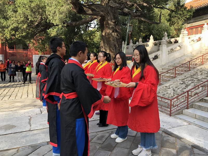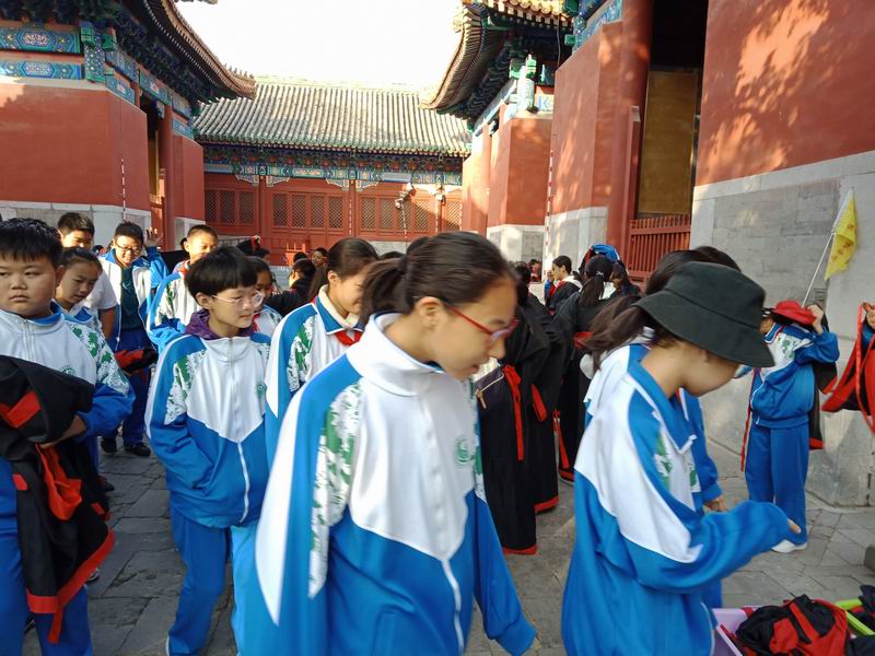 送爽秋风至,怡人秋意来!2019年11月1日,对外经贸大学附属中学初一年级全体师生迎来了盼望已久的“传承国学,研习礼乐——孔庙•国子监课外实践活动”。