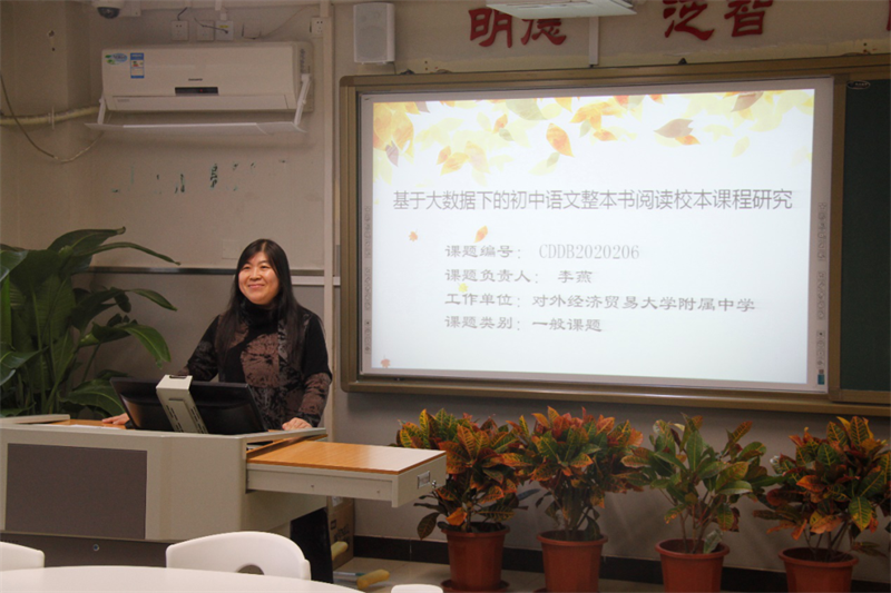 2020年11月18日,贸大附中初中部举办课题开题报告会,北京市督学研究中心教研中心石英德副主任、北京市基础教育研究中心李卫东副主任、北京教育学院朝阳分院语文培训部陈沛老师、北京市陈经纶中学嘉铭分校庄重副校长为评审专家莅临指导,教科所科研员袁光秀老师、望京学区兄弟学校教科研干部参会。报告会由初中部主管副校长宋妍妍主持。