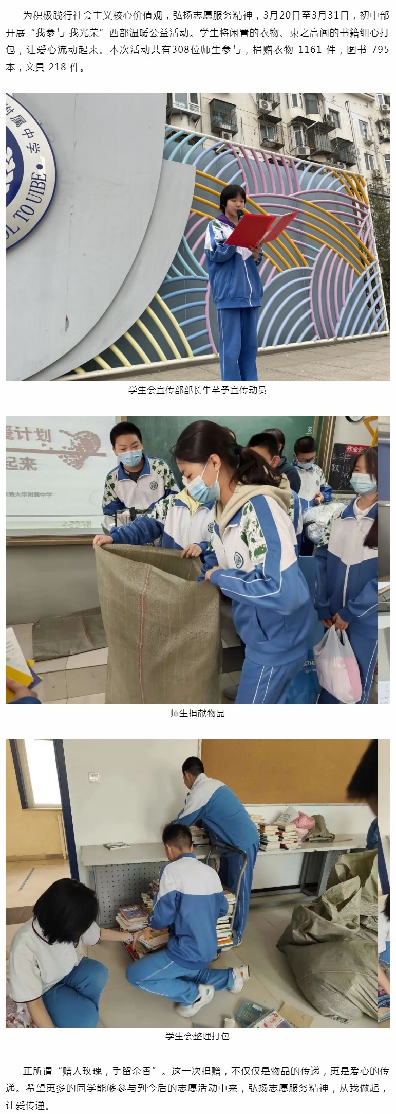 我参与 我光荣——贸大附中师生踊跃参与西部温暖公益活动