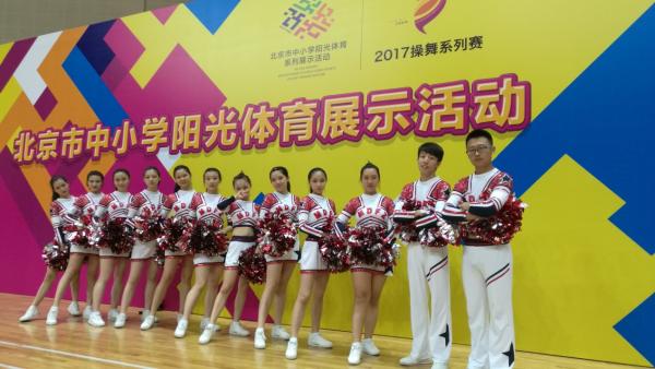 在2017年北京市中小学阳光体育运动展示活动暨啦啦操比赛中,我校啦啦操队从94支代表队中脱颖而出,以392分的成绩勇夺啦啦操自选动作冠军、全国校园啦啦操示范套路亚军,连续三年蝉联该奖项最高冠军。