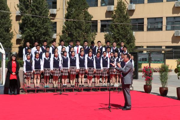 在2017年世界读书日来临之际,我校迎来了第四届读书节,继著名儿童文学作家曹文轩先生莅临我校主讲“阅读与写作”公开课,4月24日学校初中部举行了“国旗下读书”暨“翰墨书屋”剪彩仪式。参加活动的嘉宾有对外经济贸易大学基础教育协作办公室主任王丽娟、对外经济贸易大学附属中学校长刘国雄等校领导。对外经济贸易大学全力支持学校营造书香校园,捐赠图书近千本,王丽娟主任以个人名义捐赠百余本图书。