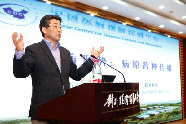 高院士以我国今年的禽流感为例,解释了人类活动对流行性疾病的病原体变异的影响。候鸟全球性迁徙路线有三条经过我国,带有低致病性禽流感病毒的候鸟从澳大利亚飞到我国南方地区,由于人类活动建设了很多高楼大厦,使得候鸟停留的时间延长,于是将病毒传染给本地家禽。病毒的遗传信息重组,使得对禽不对人的低致病性禽流感变异为易感染人类的高致病性禽流感。在活禽市场,易感人群与病禽长期接触,给病毒适应人体环境提供了便利,于是禽流感便传染给人类。之后人们才开始重视起人类活动与传染病的关系。