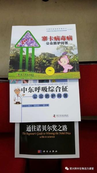 讲座最后,我校向高院士赠送我校校徽以作纪念。高福院士则送给同学们《流行性疾病公众防护宣传册》和《通往诺奖之路》,鼓励同学们在科学探索的路上继续前行!