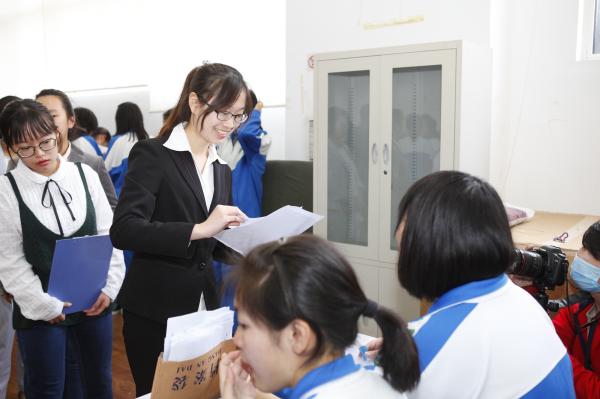 此次招聘会邀请到可口可乐饮料有限公司、富士康精密组件(北京)有限公司和中国航空博物馆(文化局)等北京本土公司来对学生进行模拟面试。“我们选择了30名高一学生作为本次活动的志愿者,主要作为学历测试区的考官,也有一部分协助各公司HR进行辅助工作。”德育处庞玉杰主任说,虽然只是一次模拟活动,但是学生还是会出现紧张的现象。