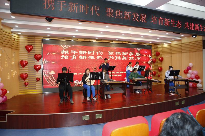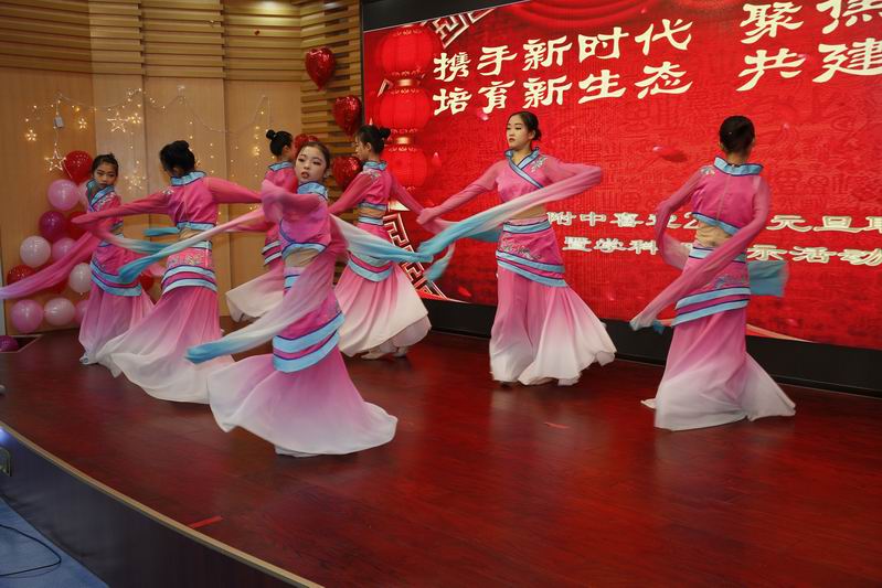 2017年12月29日,贸大附中全体教职工欢聚一堂,共迎2018年新春的到来。在新课改浪潮下大胆创新的学科组代表,以展演的形式与师生分享学科组文化,凸显学科组特色;初高中学生为感谢师恩献上民乐演奏及古典舞,高雅的艺术品位反映学校一年来素质教育的成果。刘国雄校长致新春贺词,向为学校发展贡献力量的全体教职工致谢。
