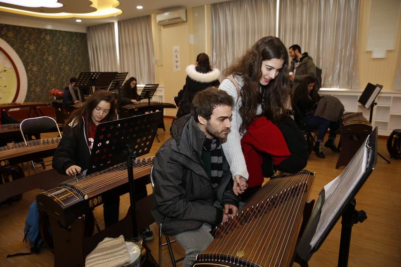 12月28日,希腊雅典商务孔院来华文化体验冬令营学员再次来到对外经济贸易大学附属中学参观学习。此次孔院访问团由在希腊雅典商务孔院学习的中学生、大学生以及医生、律师等14名学员组成,学校体验活动旨在进一步推进汉语文化交流,提高学员学习汉语的兴趣和汉语言文化水平。徐卫书记代表学校对学员表示热烈欢迎,赞扬了学员们学习汉语的热情,鼓励学员们积极参与文化体验,感受中国汉字、书画的艺术之美。全体学员观摩了附中学生冬季跑操活动,参观了音乐、美术专用教室以及理化生高端专业实验室。在书画老师指导下,附中学生志愿者的帮助下,亲身体验中国书画的魅力,完成一幅幅象征幸福吉祥的中国牡丹,共迎新年。