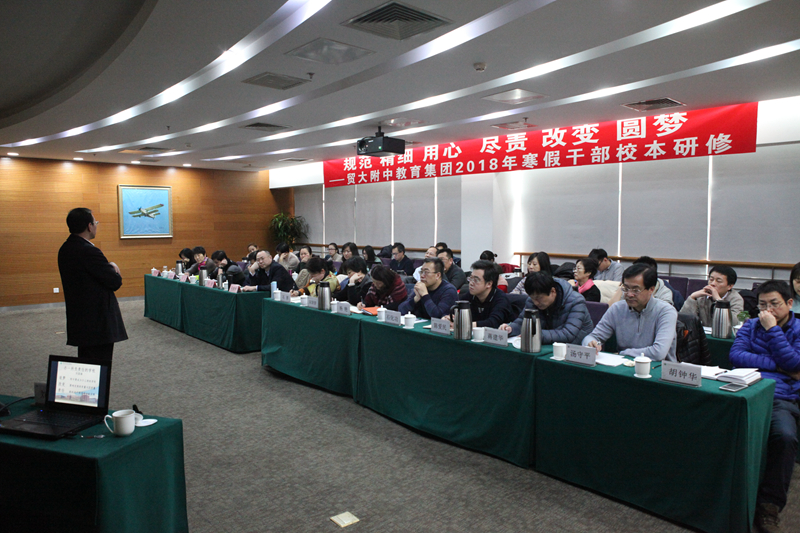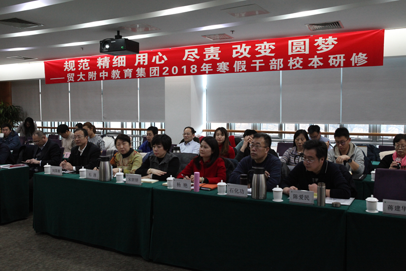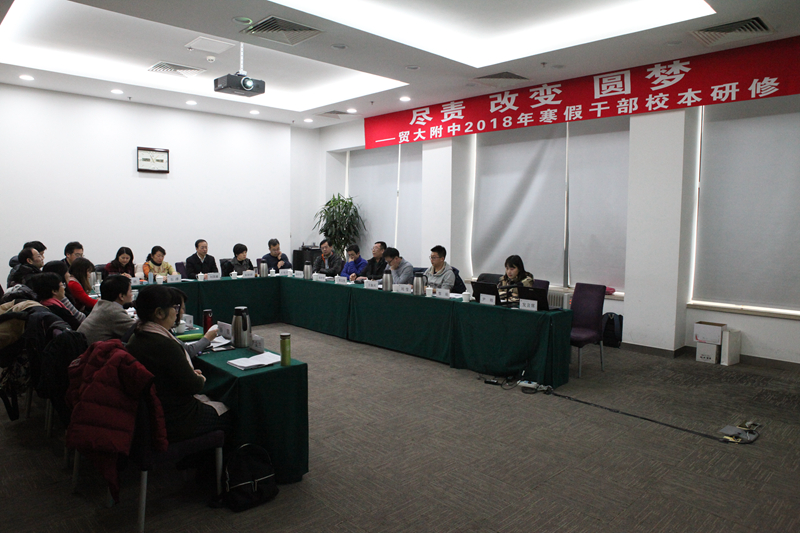 围绕当前教育改革新形势、新任务及工作重点,为切实增强干部应对新形势、解决新问题、克服新困难的能力,尽早实现学校“京城一流 国际知名”的发展目标。2018年1月26、27日,贸大附中初高中及新城分校寒假“练兵”,共同开展干部研修,通过校际联动、集中培训、头脑风暴、分组研讨、重点解析,干部深度反思2017年整体工作,研讨绘制2018年工作蓝图,为赢战2018年中高考奠基。
