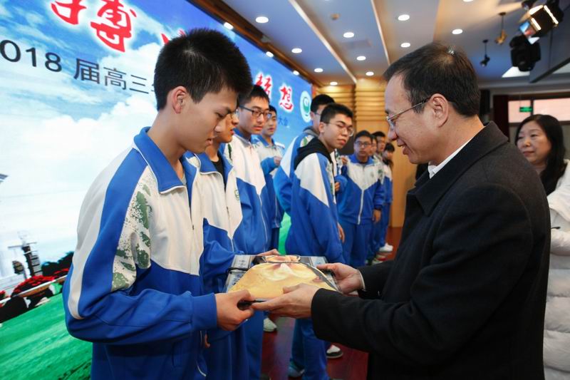 校领导及家长代表为学生颁发高考倒计时牌、锦囊
