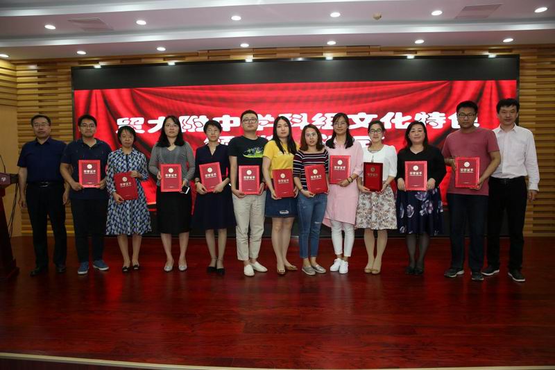 学科文化是学校文化的源头之水、动力之源。学校文化节的成功举办是学校文化建设的深化和聚焦,经过长期的承继和发展,各学科组借助学科文化建设交流会,聚焦课堂,凝练文化,逐步形成“以入世的精神做事 以出世的态度做人”的语文组文化特色、“贵和尚中 和而不同”的数学组文化特色、“学贯中西 最in巾帼”的英语组文化特色、“勤学 乐研”的物理组文化特色、“宏微结合 出神入化”的化学组文化特色、“走进实验室,探究曼妙微观界;走进大自然,发现奇趣生物圈;举全组智慧,创特色校本课程;扬个人魅力,铸最美生物课堂”的生物组文化特色、“世界眼光 家国情怀”的历史组文化特色、“地理课程校本化”的地理组文化特色、“各美其美 美美与共 构建立体培养核心素养课程体系”的政治组文化特色、“自强自信获得尊重;和谐奋进赢得发展”的体育与艺术组文化特色。会上,十大教研组组长分享学科组文化特色、背后的故事、收获与创新,以及对未来工作的思考,将学校文化建设引向纵深内涵式发展。刘国雄校长和杨艳副校长为十大学科组颁发文化特色奖牌,干部们为参加展示交流的学科教师颁发证书。