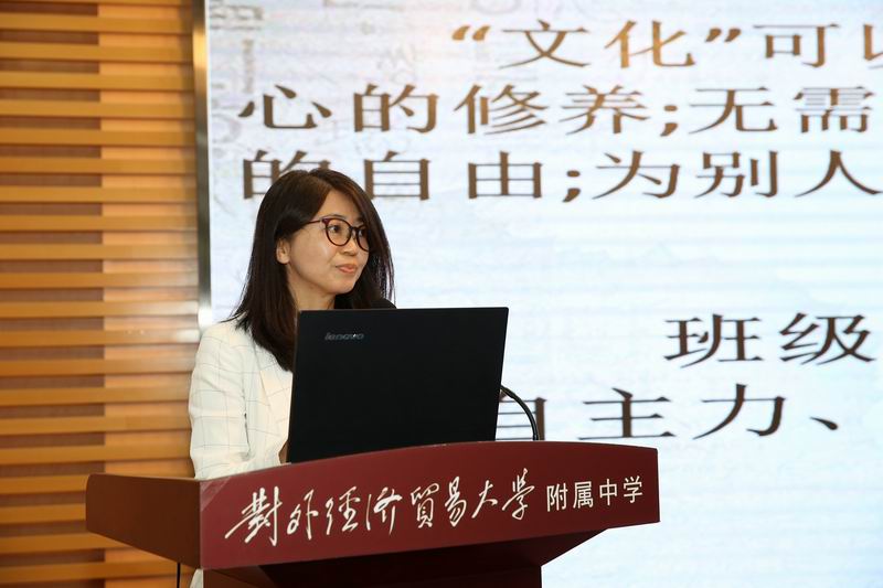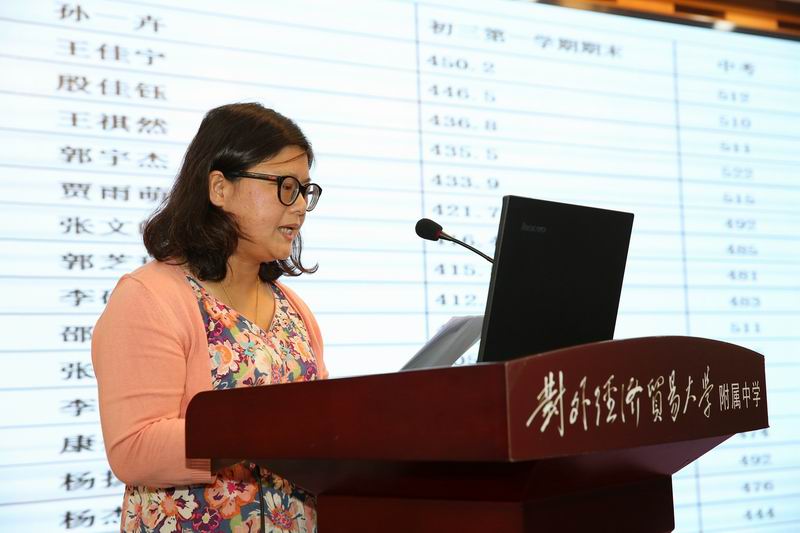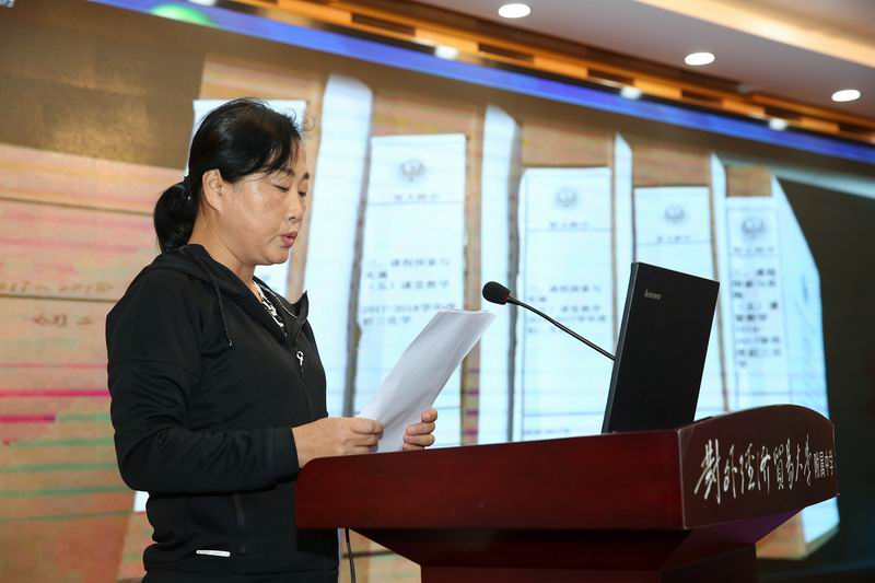 (贸大基础教育协作办公室王丽娟主任为获奖教师颁奖)