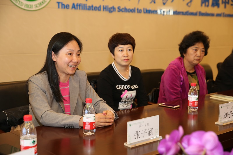 为了加强家校联动,帮助新高一学生尽快适应高中生活,对外经济贸易大学附属中学于2018年10月11日举办了“家校合作 协同育人”校长对话家长第十四期——“学会适应”。校长刘国雄、学生发展中心主任姜国,年级主任王雪,高一年级班主任杨彩云老师全程参与交流。