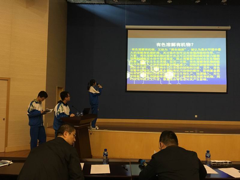 之后,我们分成两队分别在研究所和台站进行研究性学习。从现场采样到实验分析,再到幻灯报告,老师们尽心尽力指导,同学们全心全意投入。