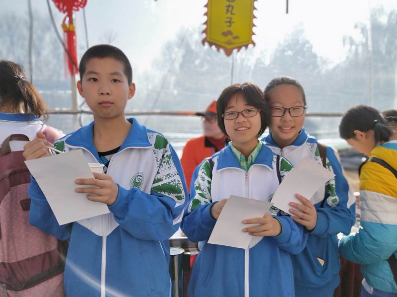 2018年11月25日下午,我校初一年级的76名学生在年级组长杨霞老师及潘馨老师的带领下,参加了“第三届朝阳区中小学生年俗主题庙会——运河上的年味儿”的主题实践活动。