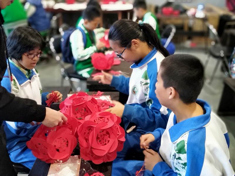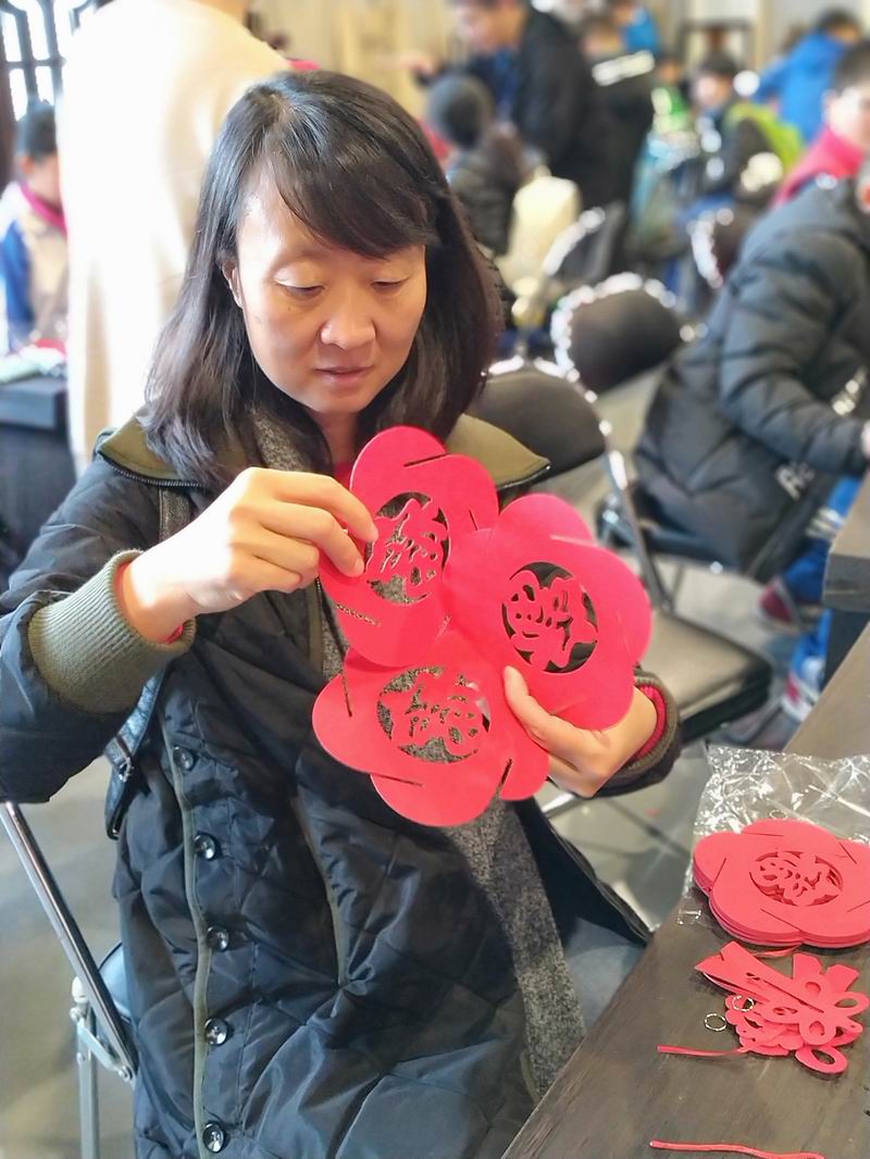 另外,孩子们还体验了吹糖人、画糖画、捏泥等多项项目,DIY了具有自己风格的面具、风筝、团扇等,自己动手制作了纸灯笼,两位老师也兴致勃勃地参与到了孩子们的活动当中,制作了一个精致的纸灯笼。