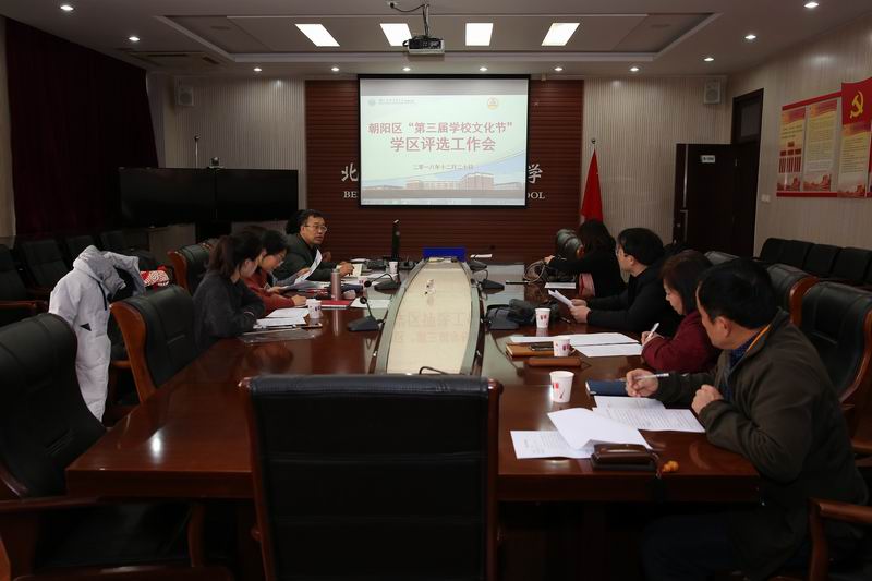 2018年12月20日下午在对外经济贸易大学附属中学五层第二会议室,望京学区发展理事会组织了“朝阳区第三届学校文化节”评选活动。参加评选活动的有对外经济贸易大学附属中学、首都师范大学附属实验学校、北京师范大学三帆中学朝阳学校、陈经纶中学分校、花家地实验小学、明远教育书院实验小学,望京实验学校、白家庄小学等学校。