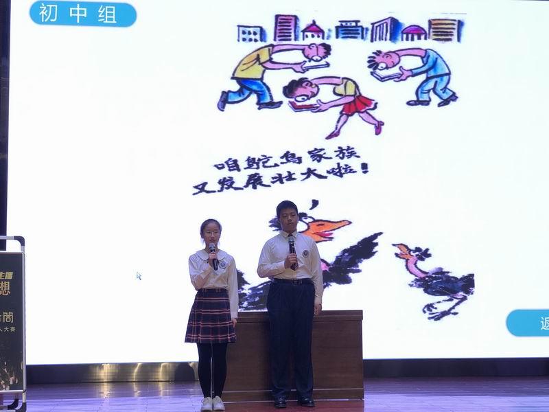 即兴评述环节非常考验选手的知识储备与临场思辨能力,初一年级的王紫翰与初二年级的胡艺桐毫无惧色,泰然应对,以明朗的观点、犀利的语言将时下“低头族”的现象剖析得入木三分。