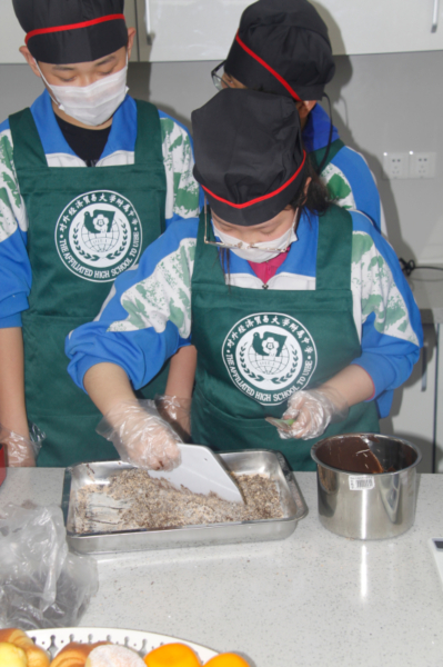 3月12日下午,贸大附中初中部情景教室里热闹非凡,原来,这是初一1班的同学在上劳动教育美食制作课,这堂课的内容是制作燕麦酥。搅拌,摊平,揉圆,烤熟,一个个形态各异的燕麦酥就做好了,同学们在劳动教育课上不仅尝到了亲手制作的劳动果实,还感受到了劳动真正的快乐。课程除了制作,品尝外还包括了课后器具整理及卫生清理,学生在体验美食之余还能学到家政劳动的本领,感知父母的不易。