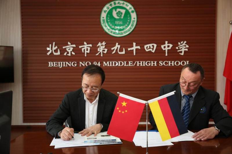 2019年3月18日,德国瓦尔登堡欧洲高级文理中学校长一行8人参访对外经济贸易大学附属中学,在热烈友好的气氛中中德两校领导进行了深入交流,并签署友好校协议。
