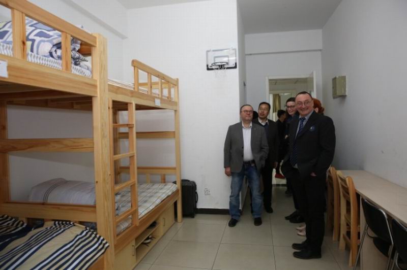 会谈后,在工会主席、招生办主任侯爽,合作交流中心主任石化功的陪同下,德国代表团参观了音乐、美术专业教室、生物高端实验室、学校国际交流厅及学生宿舍,实地了解中国学生丰富的学校生活及教育教学管理模式。