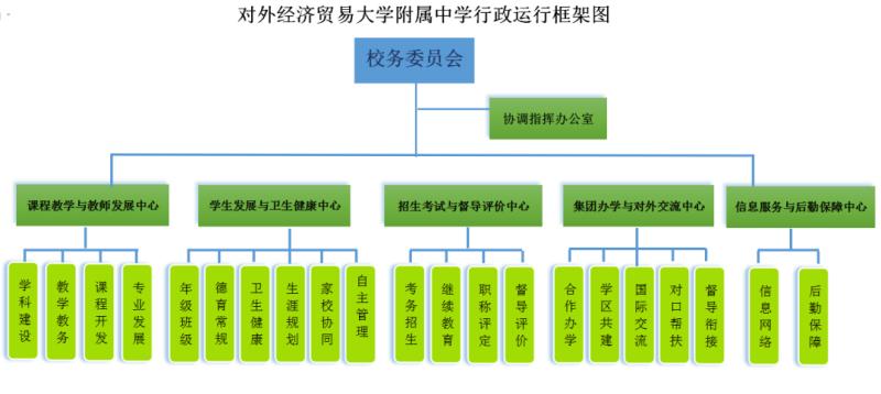对外经济贸易大学附属中学已推进两年的“1+5”中心组织运行模式(学生发展中心、课程教学中心、教师发展中心、对外合作交流中心、服务保障运营中心),很好地适应了高中教育教学改革的需要,也经受了疫情期“无界”管理的检验。疫情防控常态化是后疫情期的常态性工作。新的学期,学校管理面临更严峻的多重挑战:学生全部返校,校园内人员密集,秋季历来又是传染病高发期等,致使卫生健康管理困难重重。从家庭信息追踪到高频次的晨午检和晚检,管理成本成倍增加;从错峰错时防控方案到必须开展的集体活动,制度设计更加复杂;从安全健康教育到五育融合促发展,课程开发更为迫切。面对校园新形态,为确保教育教学工作更加安全、有序,对学校原有组织进行重建,实现“1+5”中心组织运行模式由1.0版向2.0版的升级。