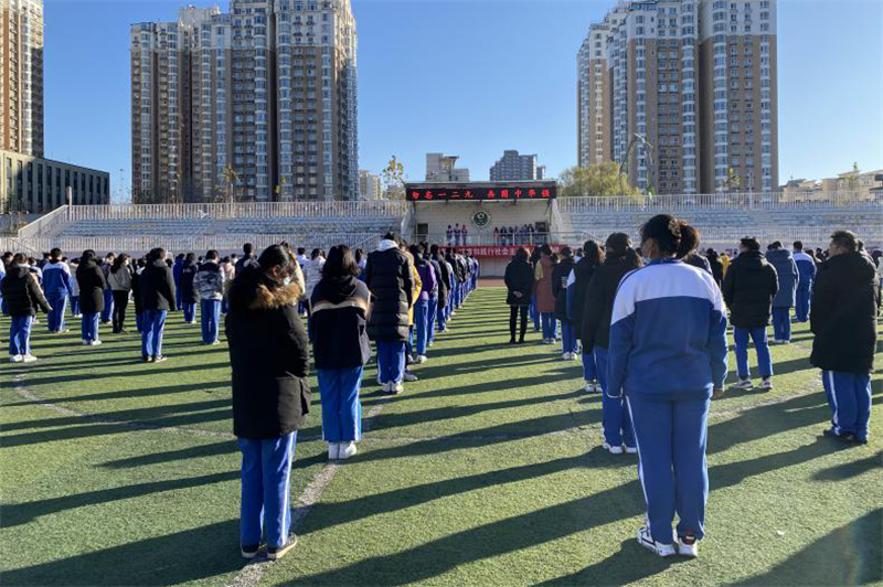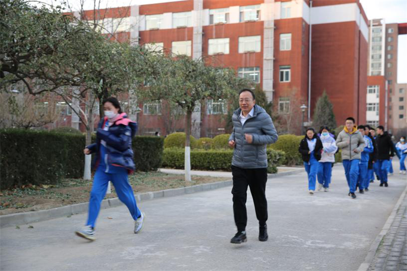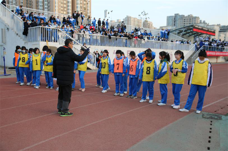 12月10日,纪念“一二•九”运动冬季长跑活动拉开帷幕,高一高二年级全体学生整装待发,刘国雄校长、学生发展与卫生健康中心、年级主任、体育组参与此次活动。在体育老师的带领下,全体学生完成长跑运动。随后,各班派出运动员代表,进行了长跑比赛。刘国雄校长与高一年级学生一同进行了比赛,隆冬的寒风,没有阻挡老师和同学们参加活动的热情,比赛现场紧张激烈,同学们呐喊助威,选手们奋勇争先,在跑道上努力拼搏。活动最后,为个人和班级进行了颁奖。