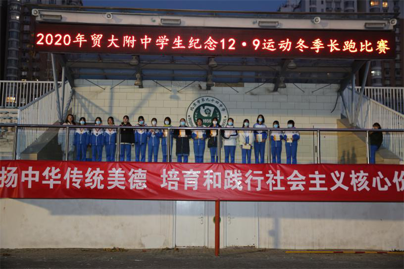 长跑活动圆满结束,一二•九纪念运动告一段落,但一二•九精神却会一直在每一位师生的心中,贸大附中的莘莘学子一定会踏着先人的足迹,奉献热情与青春,奉献忠诚与信仰,为祖国的现代化建设而奋斗!