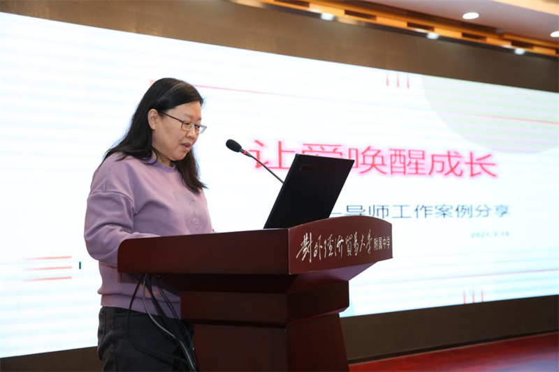 会上,张林老师以“让爱唤醒成长”为主题,做导师工作案例分享,张林老师的发言中体现了贸大附中教师的育人情怀,贸大附中的每一位老师都在用心去倾听、去陪伴、去欣赏每一个孩子,用一名老师真挚的爱来影响和唤醒学生。她的话语中传递着“每一个孩子,都值得去爱”的工作理念,让在坐的每一位老师都深受感染。