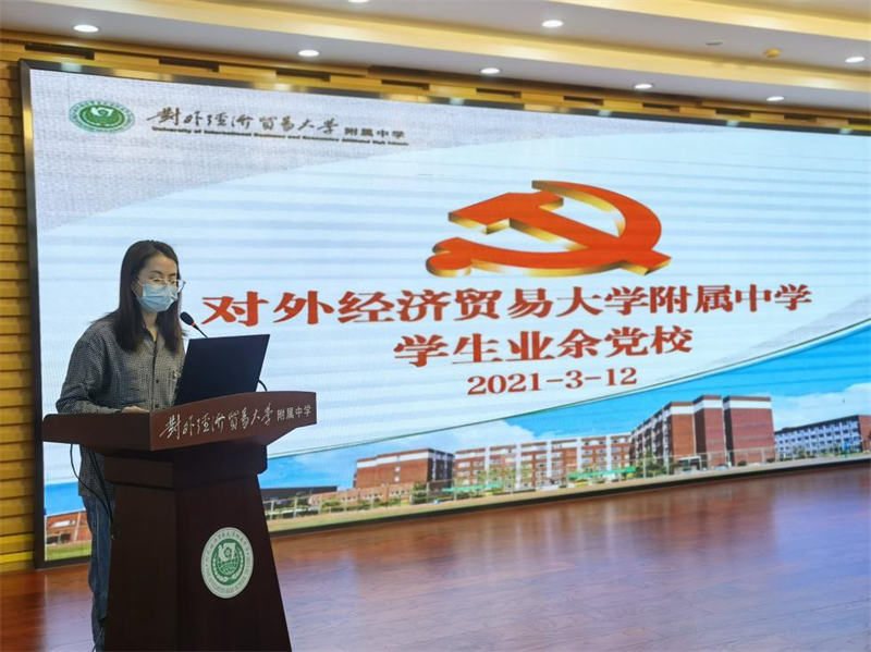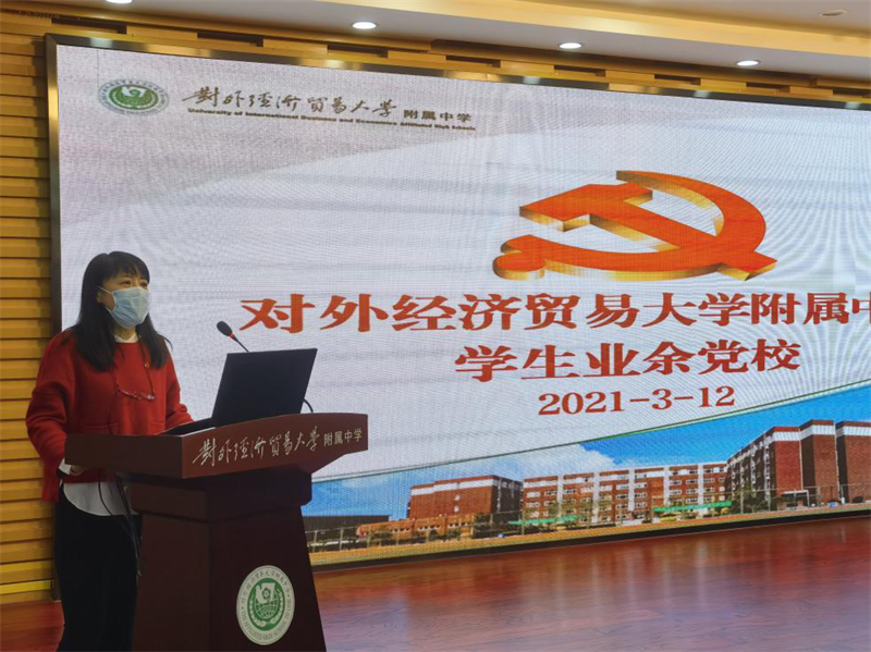 3月12日贸大附中第五期学生业余党校正式开班。参加开班仪式的有党总支书记徐卫、党总支副书记石淳、行政支部书记侯爽、高中支部书记李怀东、团委书记刘莹、副书记周璐和39名党校学员。