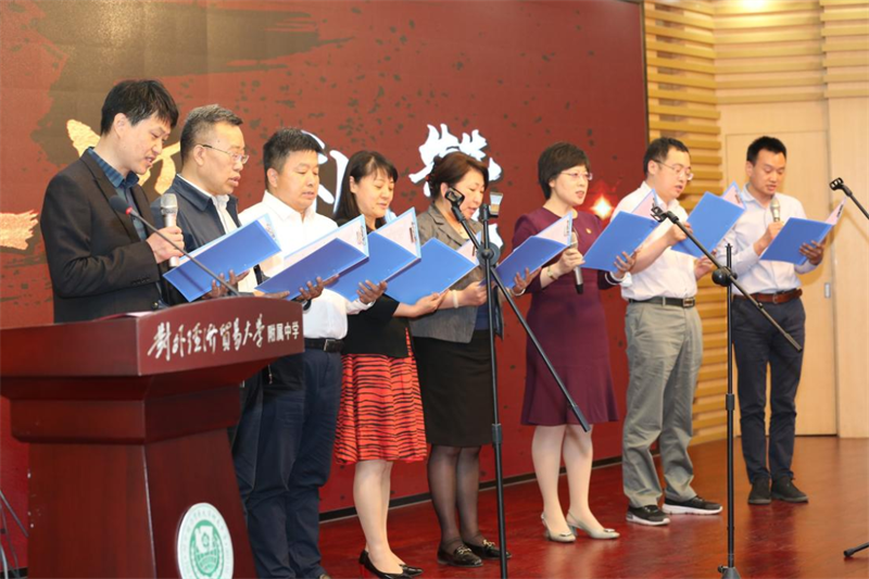 《党旗颂》带领教师们重温了党的奋斗历程。“随时准备为党和人民,牺牲一切,永不叛党!”誓言犹在,奋斗不渝,这是新时代共产党员、新时代贸大附中青年的庄严承诺。