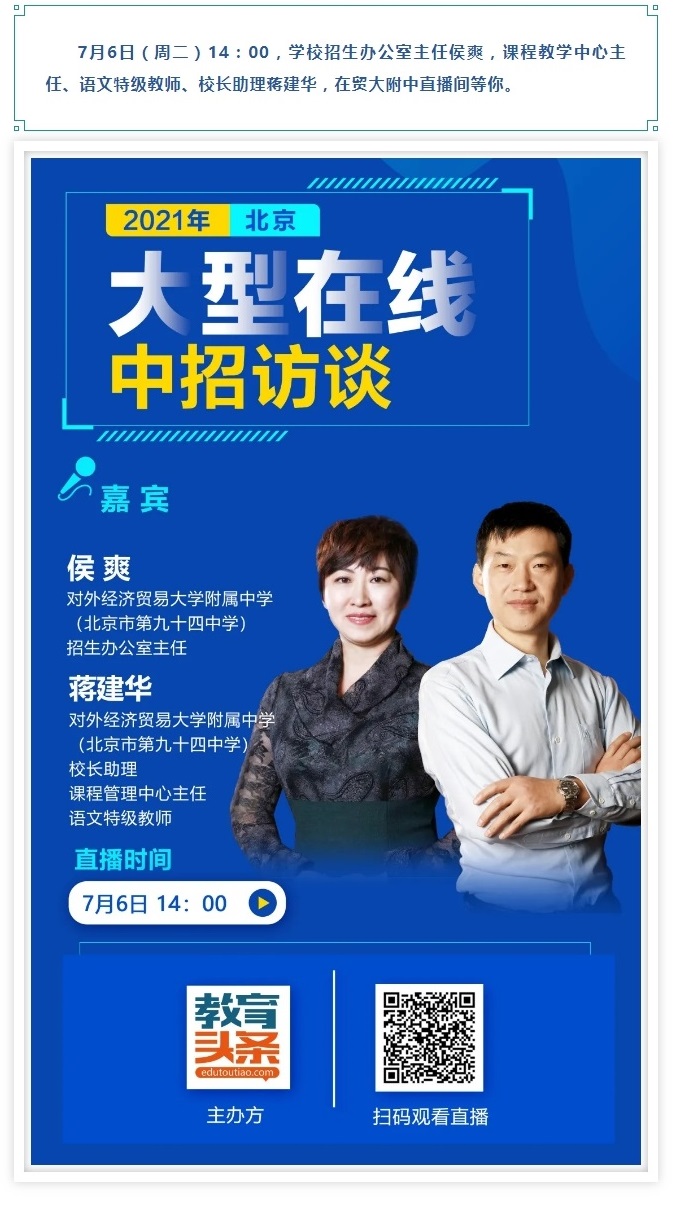 关于贸大附中,这里有你想了解的一切!锁定7月6日贸大附中中招访谈直播间