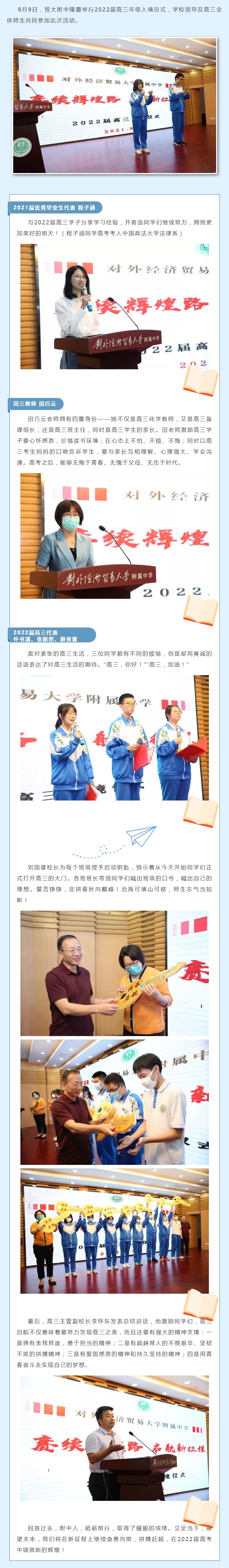 赓续辉煌路 启航新征程 贸大附中2022届高三年级入境仪式