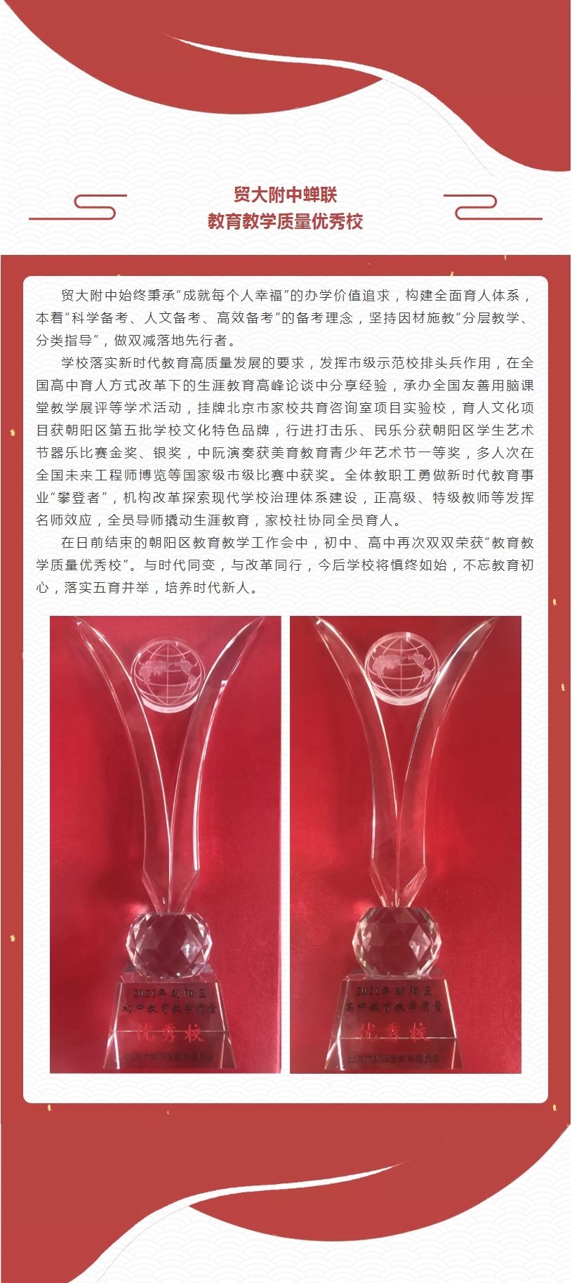 双优!贸大附中蝉联教育教学质量优秀校