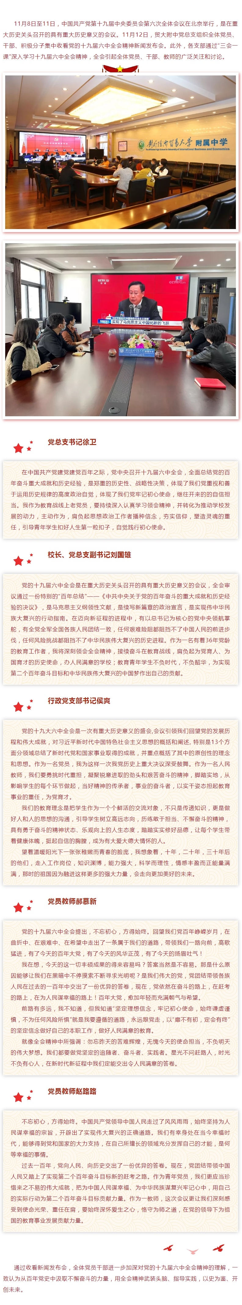 贸大附中收看党的十九届六中全会精神新闻发布会