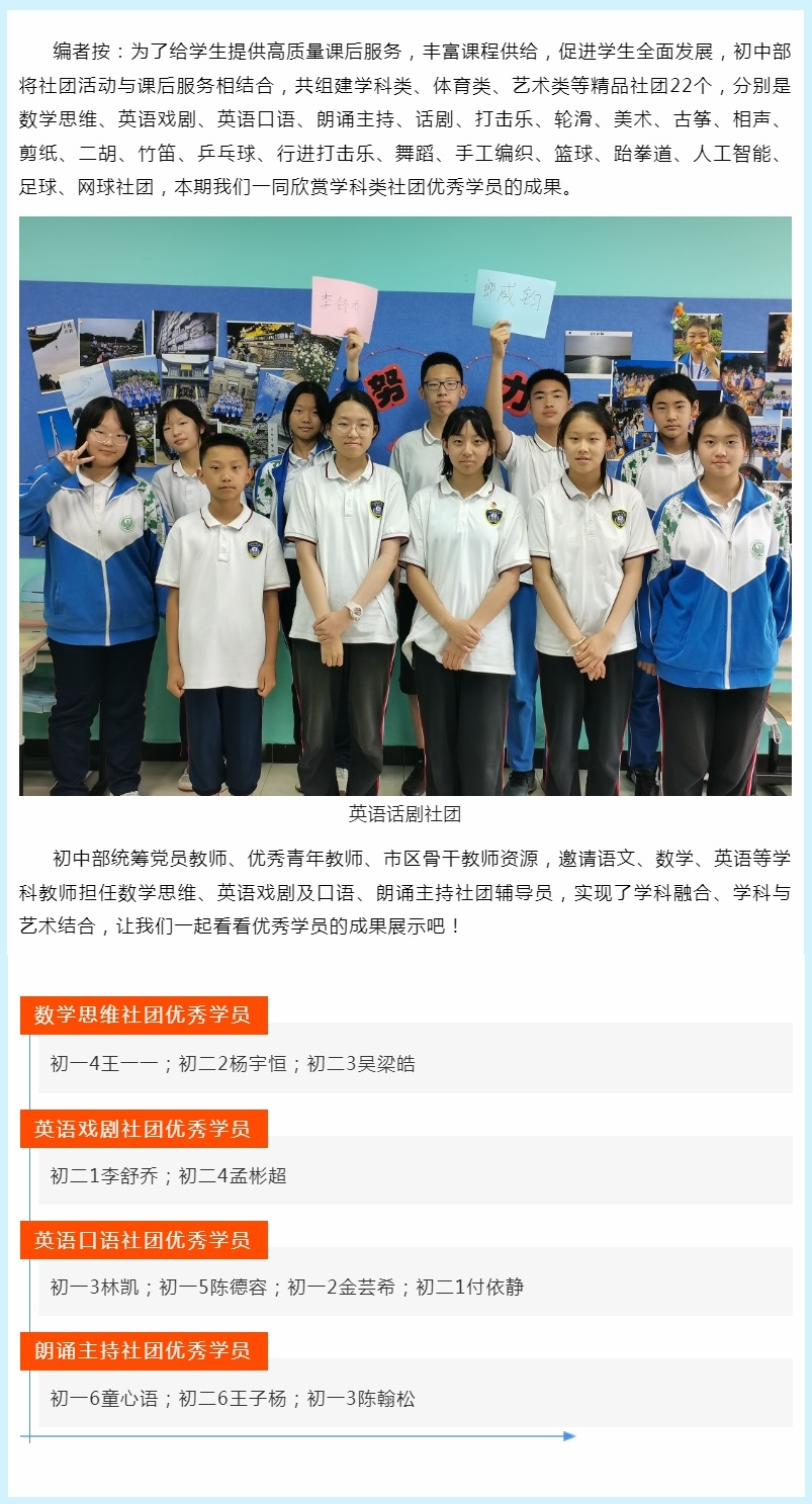 贸大附中初中部学科类社团优秀学员表彰