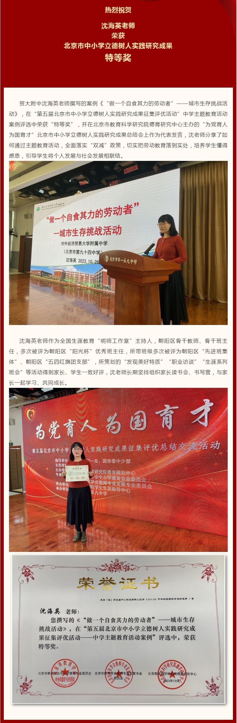 沈海英老师在北京市中小学立德树人实践研究成果评选中荣获特等奖