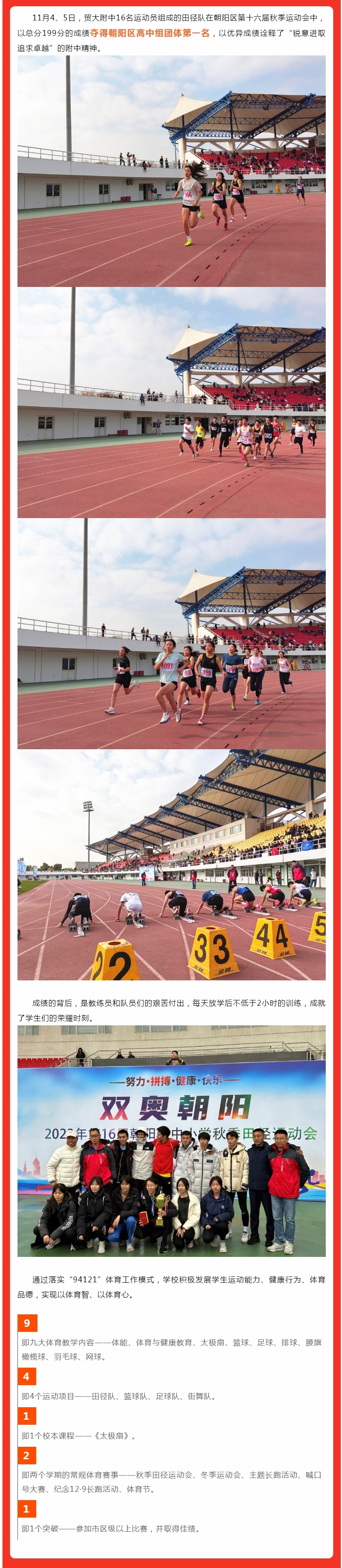 贸大附中田径队在朝阳区秋季运动会勇夺第一