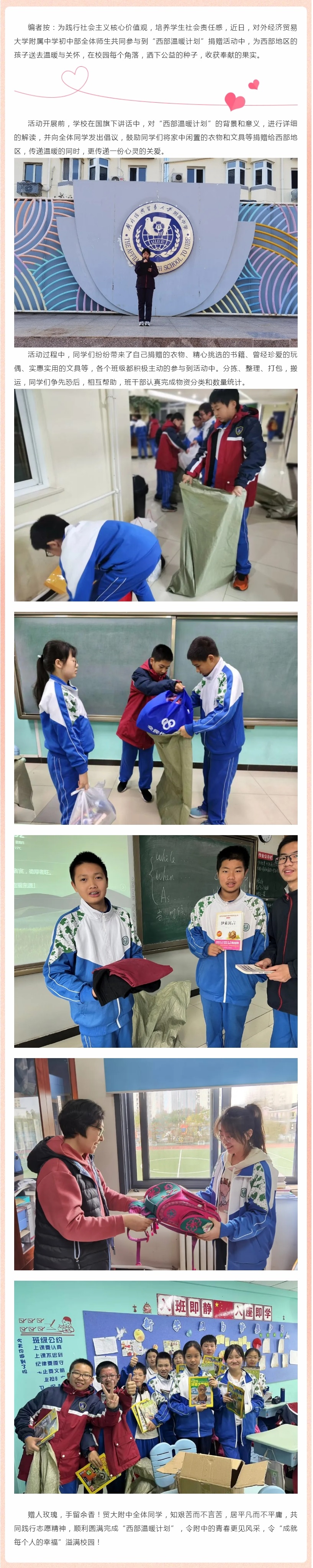 爱心汇聚 温暖成海——贸大附中初中部西部温暖计划