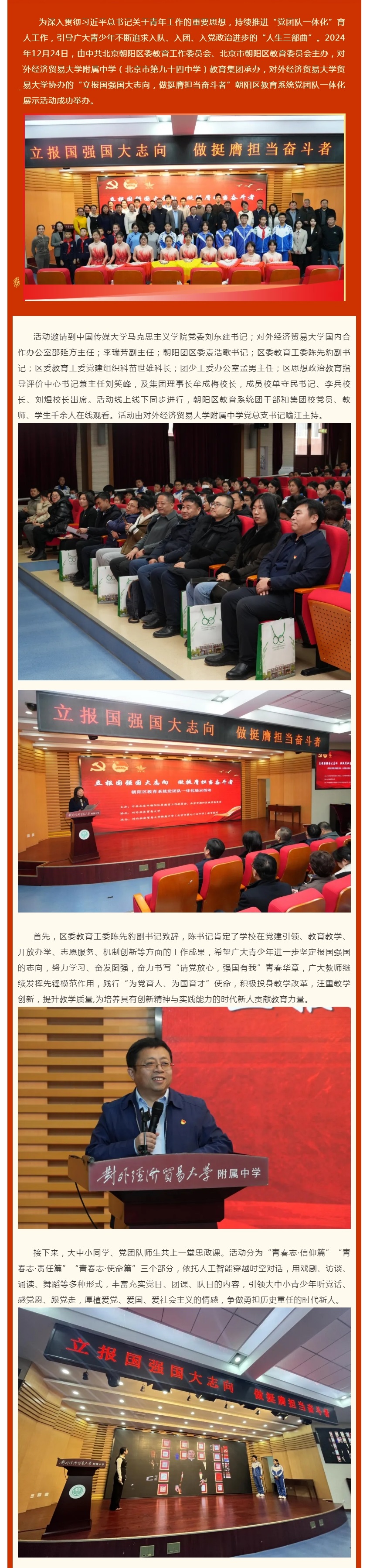 贸大附中承办朝阳区教育系统党团队一体化展示活动