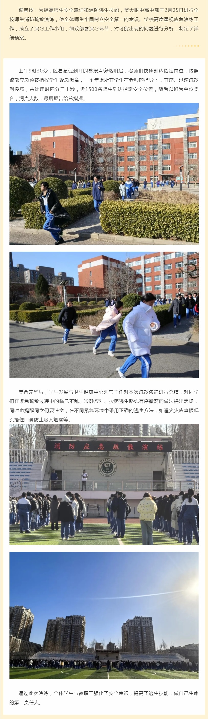 安全疏散大练兵 共筑校园 “防火墙”