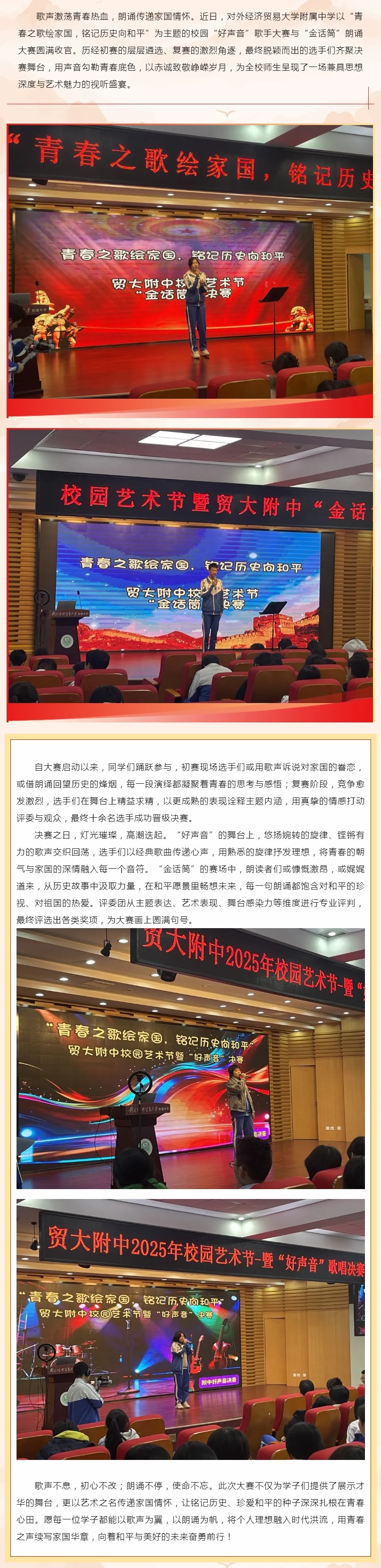 “青春之歌绘家国,铭记历史向和平”——贸大附中高中部“好声音”“金话筒”大赛圆满落幕